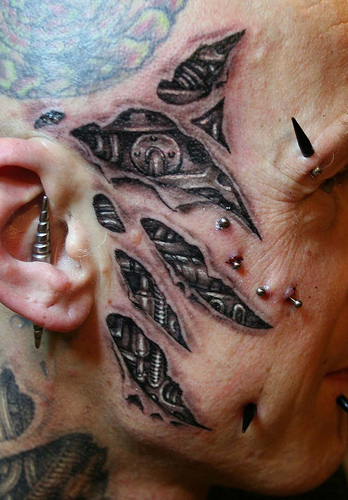 São tatuagens que normalmente misturam orgãos do corpo e engenhagem, fios e peças mecânicas. Possuem efeito 3D e sobreando para dar efeito de profundidade